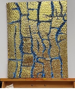Spuren (2025)- Wabenpappe, Schlagmetall und Sprühkreide
